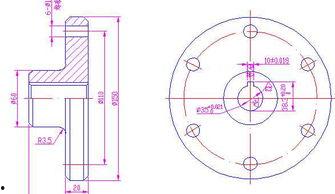 4. 注意尺寸:切面图上会有送料轮的尺寸标注,包括直径、厚度等。这些尺寸是设计和生产送料轮的重要依据。